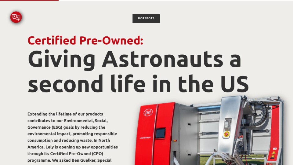 Extending the lifetime of our products contributes to our Environmental, Social, Governance (ESG) goals by reducing the environmental impact, promoting responsible consumption and reducing waste. In North America, Lely is opening up new opportunities through its Certified Pre-Owned (CPO) programme. We asked Ben Guelker, Special Projects Manager for CPO in the US, about the initiative.
